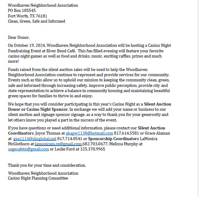 WNA Casino Night Donations WNA Casino Night Donations 08/11/2024 by WoodhavenNA Share this: Click to email a link to a friend (Opens in new window) Email Click to print (Opens in new window) Print Like Loading...